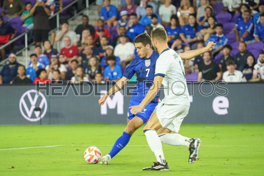 Orlando, Florida, March 27, 2023, USA forward Gio Reyna #7 makes a pass during the CONCACAF Nations League Match at Exploria Stadium. (Photo Credit: Marty Jean-Louis)