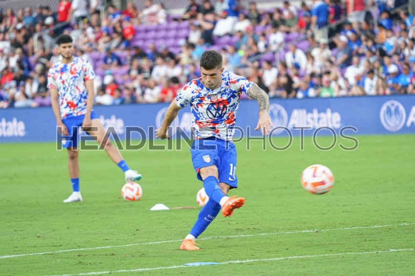 Orlando, Florida, March 27, 2023, USA Captain Christian Pulisic #10 warning up during the CONCACAF Nations League Match at Exploria Stadium. (Photo Credit: Marty Jean-Louis)