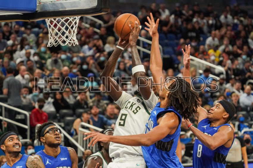 Orlando, Florida, USA, December 30, 2021, Milwaukee Bucks Center Bobby Portis Jr #9 attempt to make a shot during the second half at the Amway Center. (Photo Credit: Marty Jean-Louis)