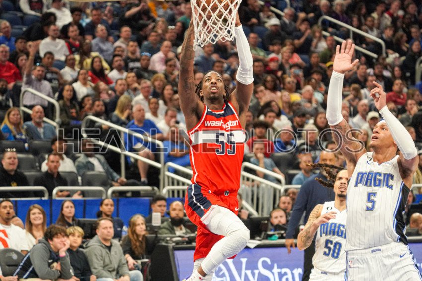 Orlando, Florida, USA, March 21, 2023, Washington Wizards guard Delon Wright #55 makes a dunk in the second half at the Amway Center. (Photo Credit: Marty Jean-Louis)