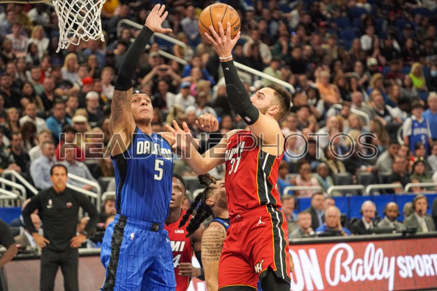 Orlando, Florida, USA, March 11, 2023, Miami Heat guard Max Strus #31 shoots a basket in the first half at the Amway Center. (Photo Credit: Marty Jean-Louis)