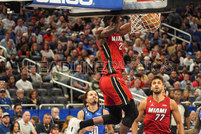 Orlando, Florida, USA, March 11, 2023, Miami Heat forward Jimmy Butler #22 makes a dunk in the first half at the Amway Center. (Photo Credit: Marty Jean-Louis)