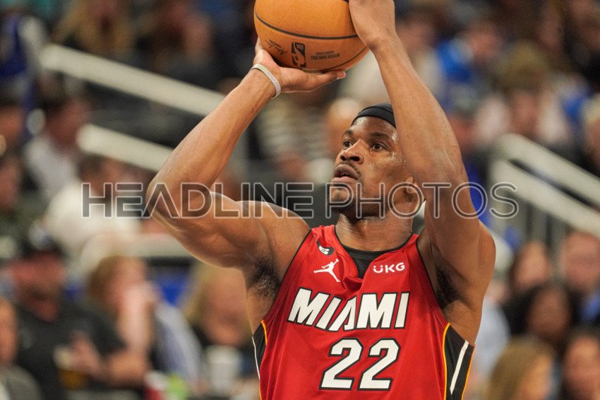 Orlando, Florida, USA, March 11, 2023, Miami Heat forward Jimmy Butler #22 shoots a free throw in the first half at the Amway Center. (Photo Credit: Marty Jean-Louis)
