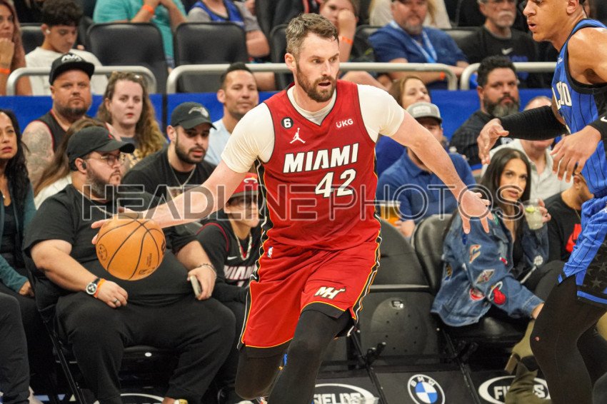 Orlando, Florida, USA, March 11, 2023, Miami Heat forward Kevin Love #42 runs towards the basket in the first half at the Amway Center. (Photo Credit: Marty Jean-Louis)