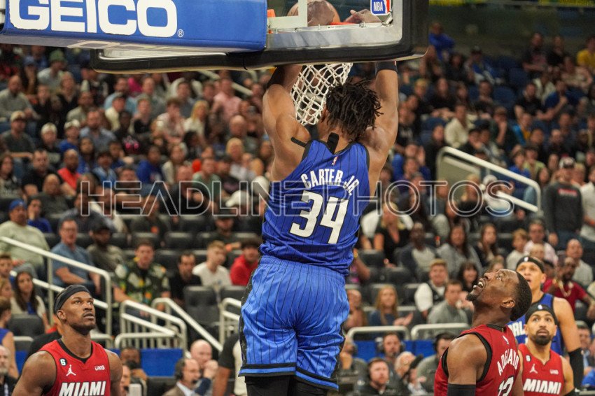 Orlando, Florida, USA, March 11, 2023, Orlando Magic center Wendell Carter Jr #34 makes a dunk in the second half at the Amway Center. (Photo Credit: Marty Jean-Louis)