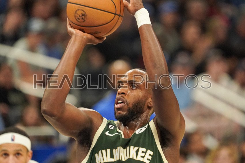 Orlando, Florida, USA,March 7, 2023, Milwaukee Bucks player Khris Middleton #22 shoots a free throw in the second half at the Amway Center. (Photo Credit: Marty Jean-Louis)