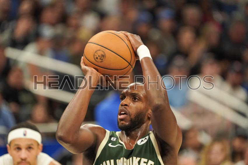 Orlando, Florida, USA,March 7, 2023, Milwaukee Bucks player Khris Middleton #22 shoots a free throw in the second half at the Amway Center. (Photo Credit: Marty Jean-Louis)
