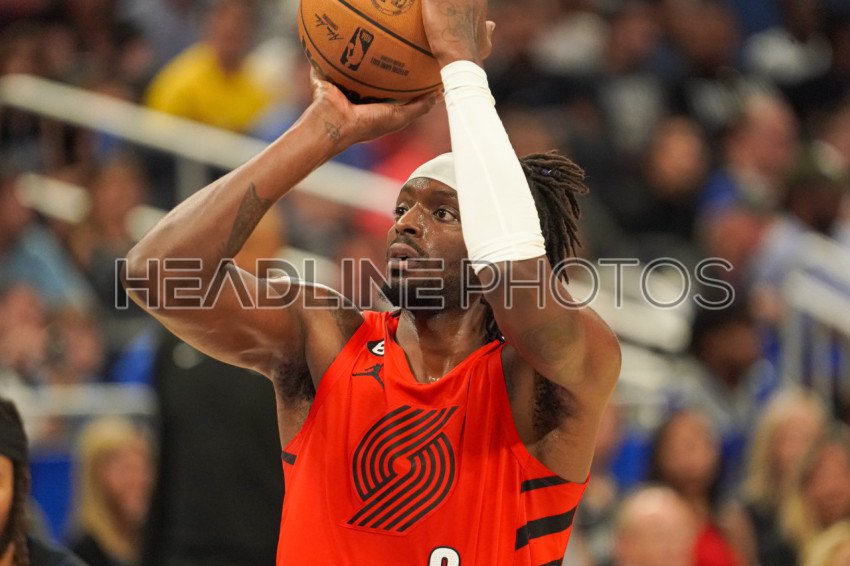 Orlando, Florida, USA, March 5, 2023, Portland Trail Blazers forward Jerami Grant #9 shoots a free throw in the first half at the Amway Center. (Photo Credit: Marty Jean-Louis)