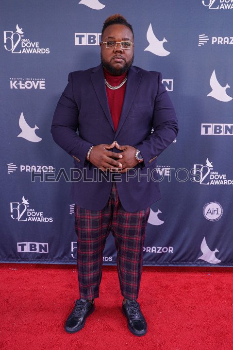 Nashville, Tennessee, USA, October 19, 2021. Singer Rickey "Slikk Muzik" walk the Red Carpet during the 52nd Annual GMA Dove Awards at Allen Arena.