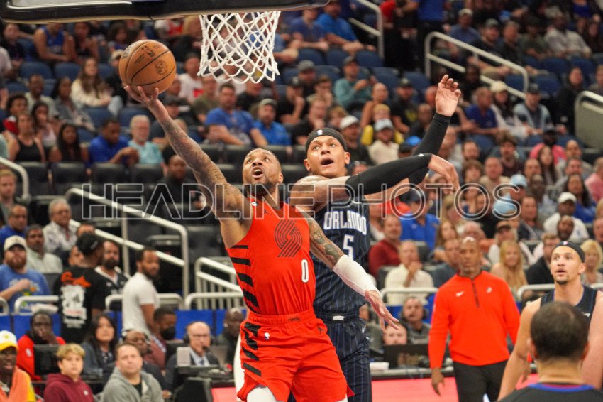 Orlando, Florida, USA, March 5, 2023, Portland Trail Blazers guard Damian Lillard #0 attempt to score during the first half at the Amway Center. (Photo Credit: Marty Jean-Louis)