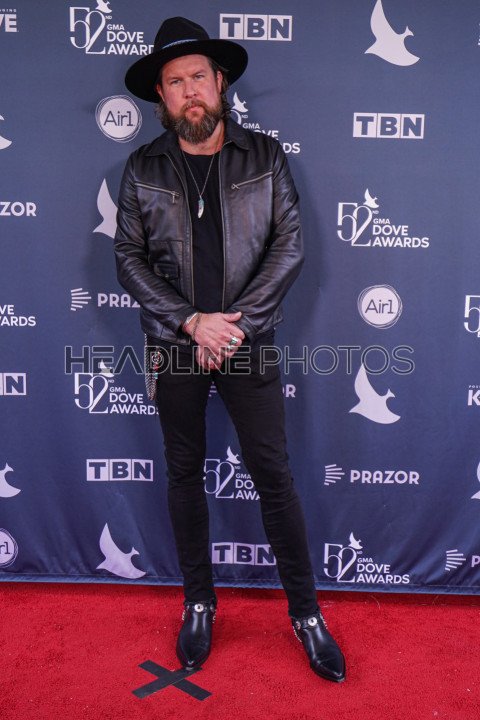 Nashville, Tennessee, USA, October 19, 2021. Singer Zach Williams walk the Red Carpet during the 52nd Annual GMA Dove Awards at Allen Arena.