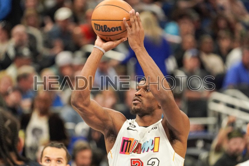 Orlando, Florida, USA, February 11, 2023, Miami Heat forward Jimmy Butler #22 attempt to make a basket in the first half at the Amway Center. (Photo Credit: Marty Jean-Louis)