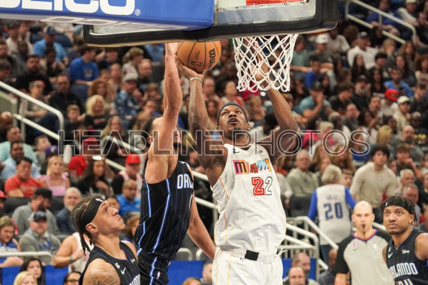 Orlando, Florida, USA, February 11, 2023, Miami Heat forward Jimmy Butler #22 attempt to make a basket in the first half at the Amway Center. (Photo Credit: Marty Jean-Louis)