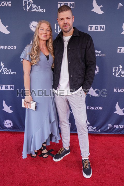 Nashville, Tennessee, USA, October 19, 2021. Tommy Iceland and his wife walk the Red Carpet during the 52nd Annual GMA Dove Awards at Allen Arena.