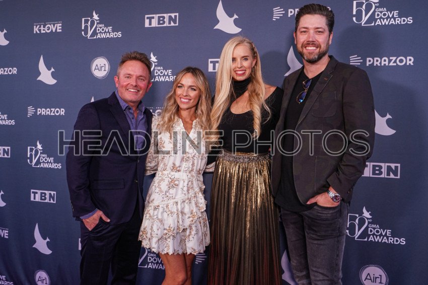 Nashville, Tennessee, USA, October 19, 2021. Christian Singer, Songwriter Chris Tomlin and his wife (left) and Corey Crowder and his wife walk the Red Carpet during the 52nd Annual GMA Dove Awards at Allen Arena.