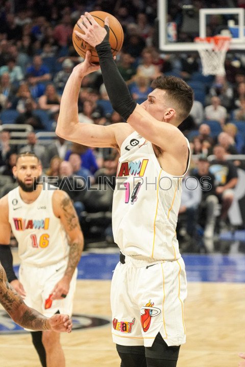 Orlando, Florida, USA, February 11, 2023, Miami Heat guard Tyler Herro #14 shoots a three in the first half at the Amway Center. (Photo Credit: Marty Jean-Louis)