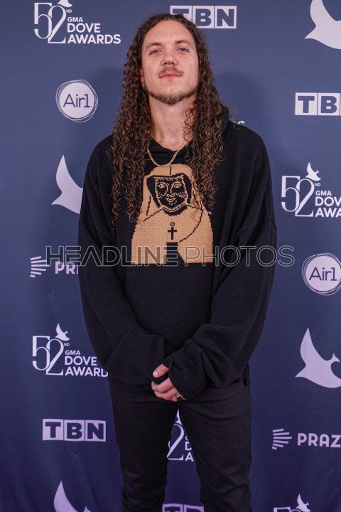 Nashville, Tennessee, USA, October 19, 2021. Singer Brandon Lake walk the Red Carpet during the 52nd Annual GMA Dove Awards at Allen Arena.