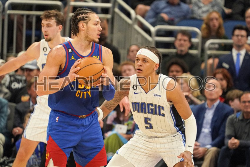 Orlando, Florida, USA, February 9, 2023, Denver Nuggets forward Aaron Gordon #50 and Orlando Magic forward Paolo Banchero #5 during the second half at the Amway Center. (Photo Credit: Marty Jean-Louis)
