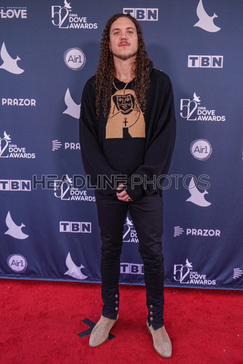 Nashville, Tennessee, USA, October 19, 2021. Singer Brandon Lake walk the Red Carpet during the 52nd Annual GMA Dove Awards at Allen Arena.