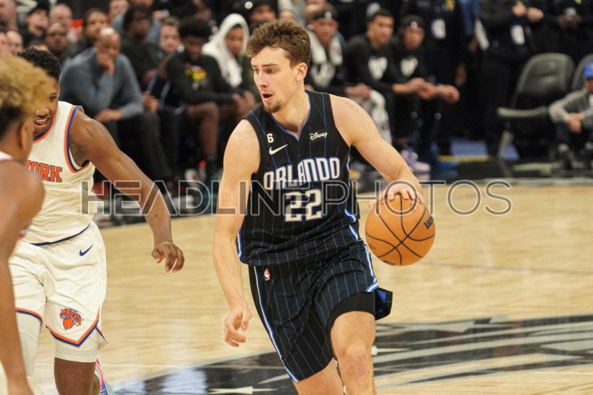 Orlando, Florida, USA, February 7, 2023, Orlando Magic player Franz Wagner pushes forward towards the basket in the second half at the Amway Center. (Photo Credit: Marty Jean-Louis)