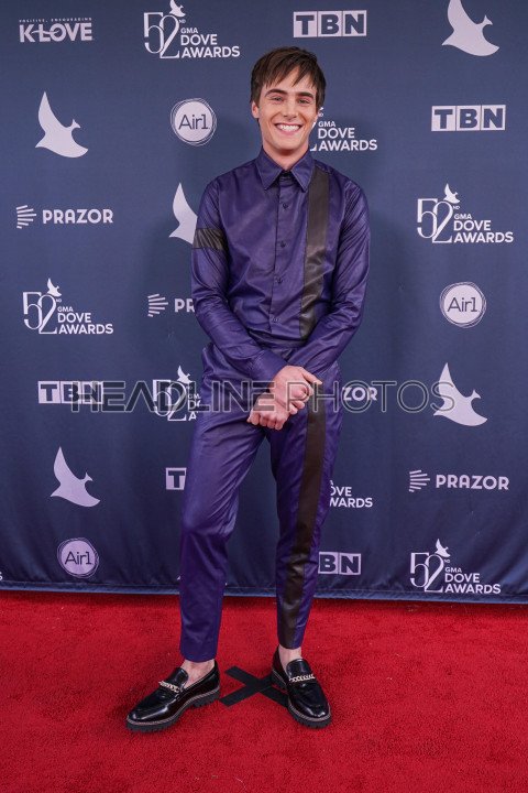 Nashville, Tennessee, USA, October 21, 2021. Actor Kevin Quinn walk the Red Carpet during the 52nd Annual GMA Dove Awards at Allen Arena.