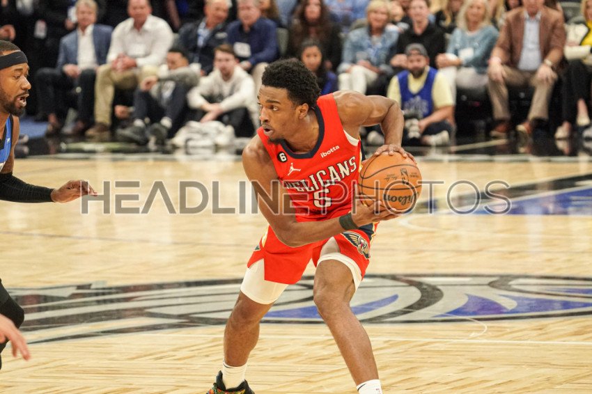 Orlando, Florida, USA, January 20, 2023, New Orleans Pelicans guard Herbert Jones #5 guards the ball in the second half at the Amway Center. (Photo Credit: Marty Jean-Louis)