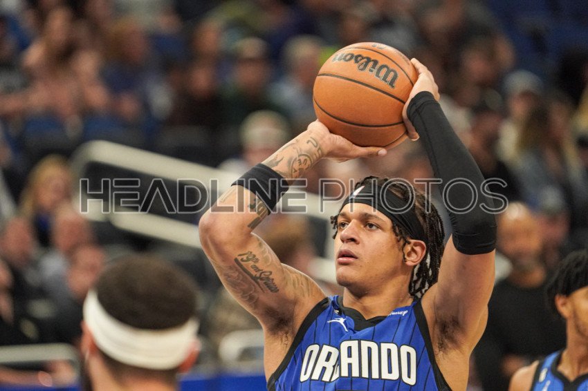 Orlando, Florida, USA, January 20, 2023, Orlando Magic forward Paolo Banchero #5 shoots a free throw at the Amway Center. (Photo Credit: Marty Jean-Louis)
