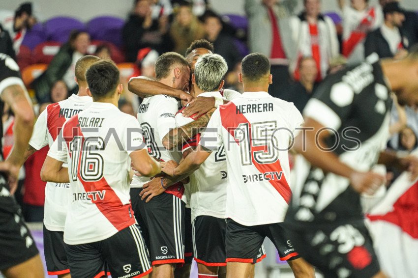 Orlando, Florida, USA, January 18, 2023, River Plate players celebrate goal in a friendly match at Exploria Stadium. (Photo Credit: Marty Jean-Louis)