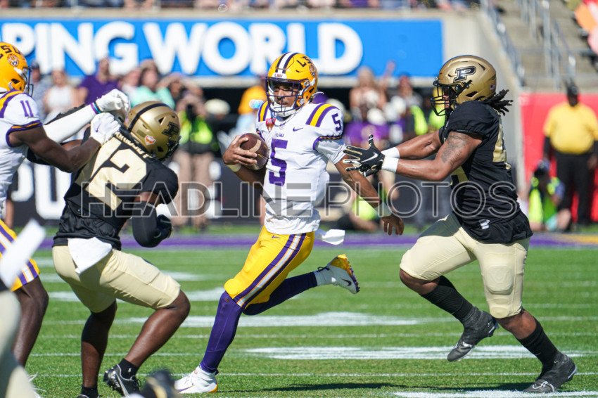 Orlando, Florida, USA, January 2, 2023, LSU quarterback Jayden Daniels #5 run and tries to avoid a tackle during the Cheez-it Citrus Bowl at Camping World Stadium (Photo Credit: Marty Jean-Louis)