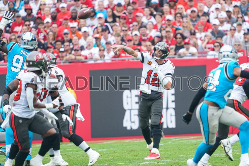 Tampa Bay, Florida, USA, January 1, 2023, Tampa Bay Buccaneers Quarterback Tom Brady #12 makes a pass at Raymond James Stadium. (Photo Credit: Marty Jean-Louis)