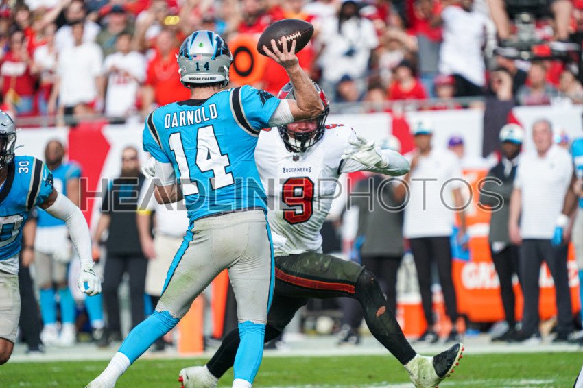 Tampa Bay, Florida, USA, January 1, 2023, Carolina Panthers quaterback Sam Darnold #14 looks to make a pass during the fourth quarter at Raymond James Stadium. (Photo Credit: Marty Jean-Louis)
