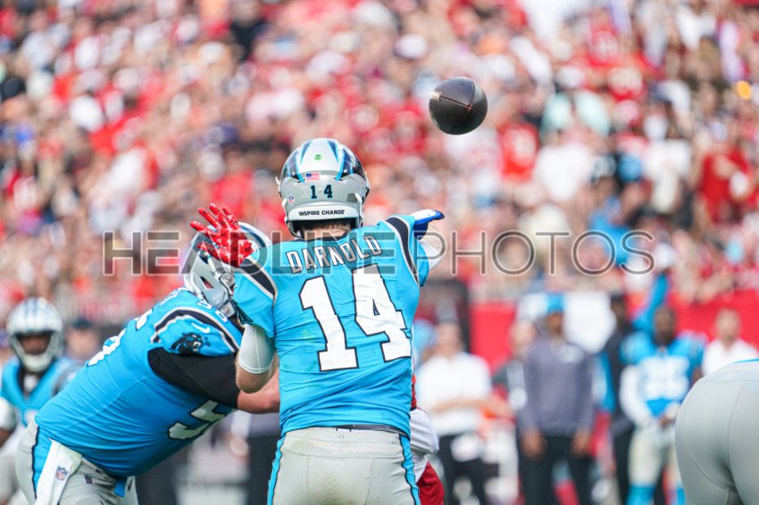 Tampa Bay, Florida, USA, January 1, 2023, Carolina Panthers quaterback Sam Darnold #14 makes a pass during the fourth quarter at Raymond James Stadium. (Photo Credit: Marty Jean-Louis)