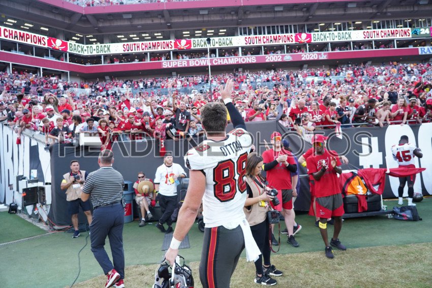 Tampa Bay, Florida, USA, January 1, 2023, Tampa Bay Buccaneers player Cade Otton #88 waves to the crowd at Raymond James Stadium. (Photo Credit: Marty Jean-Louis)