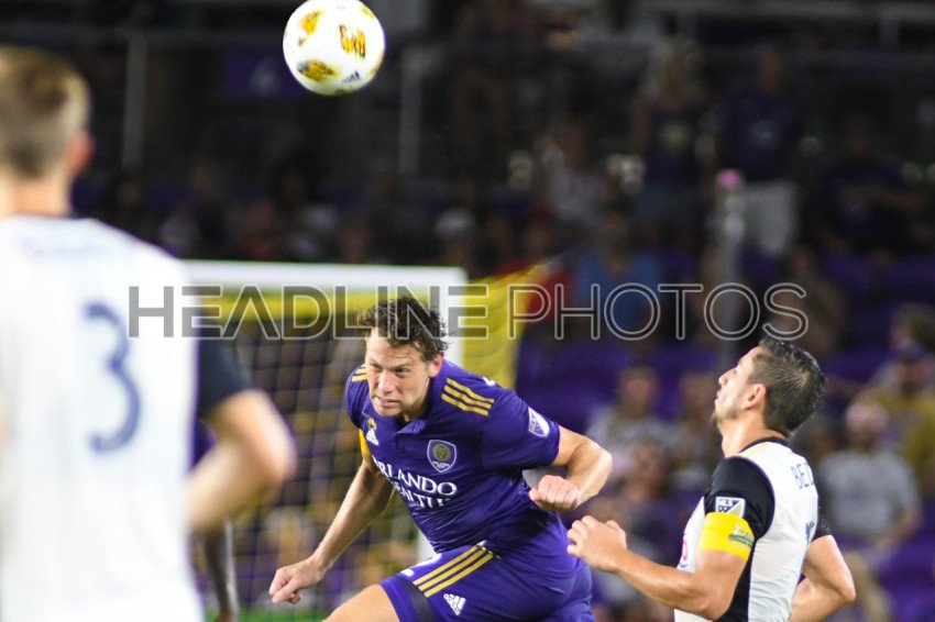 Orlando City Captain Jonathan Spector makes a header - Orlando City Stadium September 1, 2018