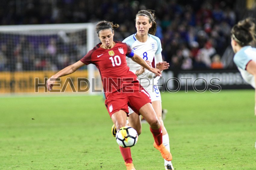 USA compete agains England during the SheBelives Cup at the Orlando City Stadium in Orlando Florida on March 7, 2018. Photo Credit: Marty Jean-Louis
