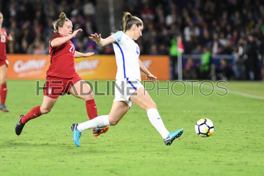 USA compete agains England during the SheBelives Cup at the Orlando City Stadium in Orlando Florida on March 7, 2018. Photo Credit: Marty Jean-Louis