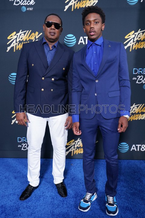 Nashville, Tennessee, USA, July 10, 2021, Master P and his son Percy Miller Jr during the 36th Annual Stellar Awards Blue Carpet. (Photo Credit: Marty Jean-Louis)