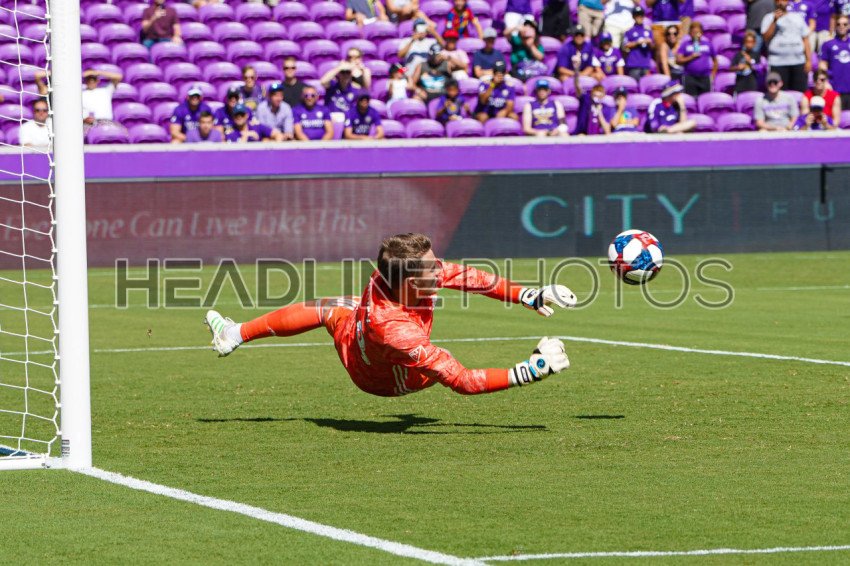 Cincinnati FC Goalie Spencer Richey (18) blocks Penalty Kick at Orlando City Stadium on May 19, 2019. Photo Credit: Marty Jean-Louis