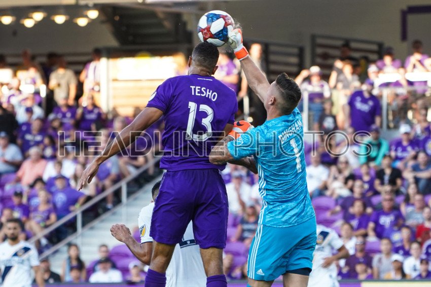 LA Galaxy Goalie D. Binham (1) blocks goal attemp. At the Orlando City Stadium on Friday May 24, 2019 in Orlando, Florida. Photo Credit: Marty Jean-Louis