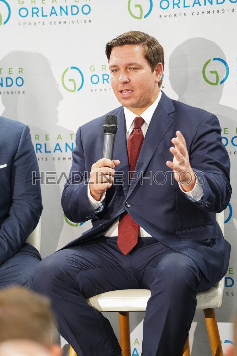 Pregame Press conference with Florida Governor Ron Desantis, and Alex Leitao at Exploria Stadium in Orlando Florida on Wednesday July 31, 2019. Photo Credit: Marty Jean-Louis