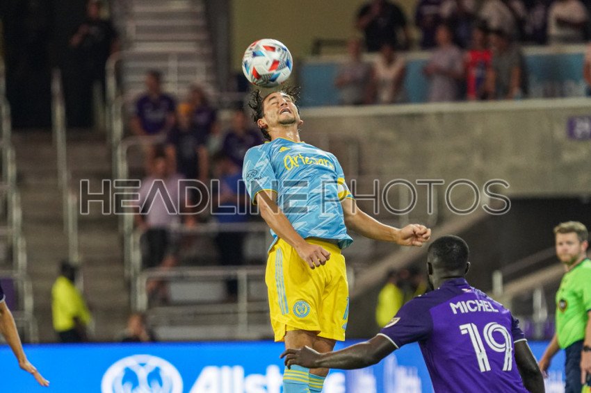 Orlando, Florida, USA, July 22, 2021, Philadelphia Union player makes a header at Exploria Stadium. (Photo Credit: Marty Jean-Louis)