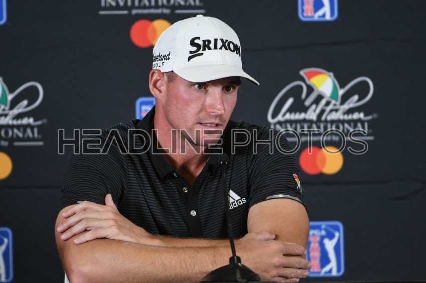 First time at the Arnold Palmer Invitational Brandon Matthews answers questions from the press at Bay Hill in Orlando Florida during the 2020 Arnold Palmer inviational. Photo Credit: Marty Jean-Louis