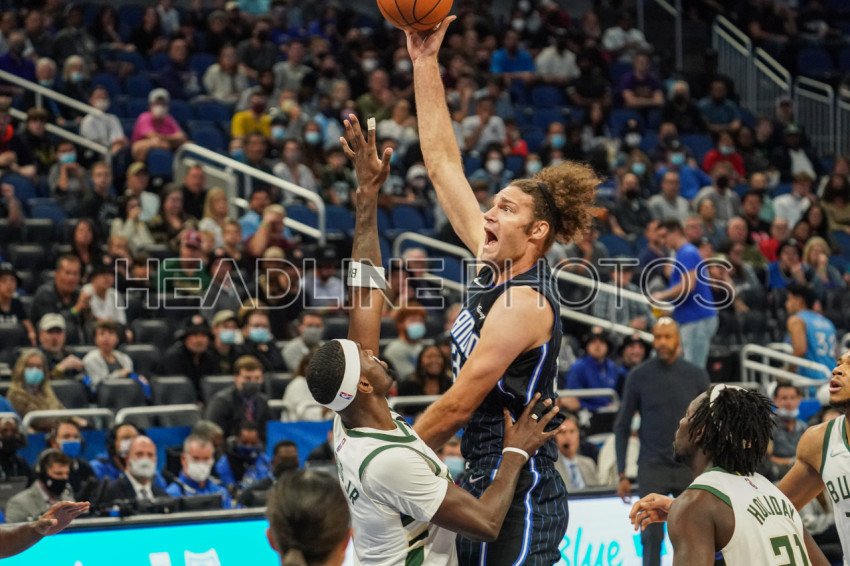 Orlando, Florida, USA, December 28, 2021, Orlando Magic Center Robin Lopez #33 attempt to make a shot during the first half at the Amway Center. (Photo Credit: Marty Jean-Louis)