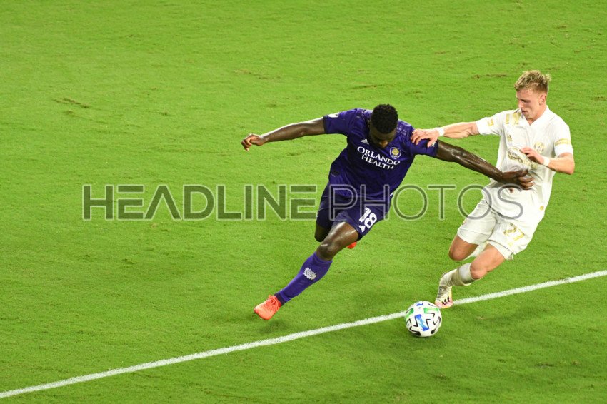 Orlando City forward Daryl Dike #18 fight to keep the ball at Exploria Stadium in Orlando Florida USA on Wednesday October 28, 2020. Photo Credit: Marty Jean-Louis