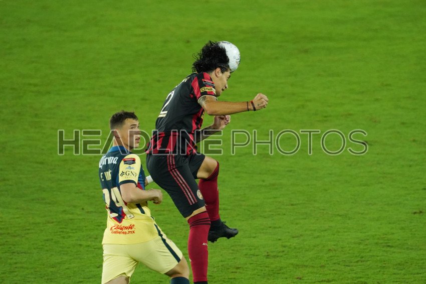 Orlando, Florida, USA, December 16, 2020, Club America player wins the header during the CONCACAF Quarter Final. (Photo Credit: Marty Jean-Louis)
