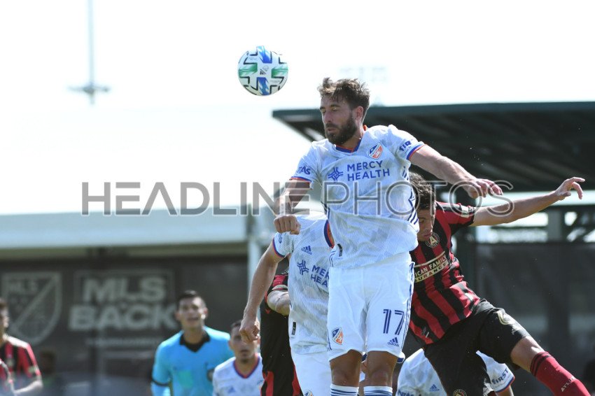 FC Cincinnati defender Deplagne, Mathieu #17 makes a header during the MLS is Back Tournament at ESPN Wild World of Sports in Orlando Florida on Thursday July 16, 2020. Photo Credit: Marty Jean-Louis