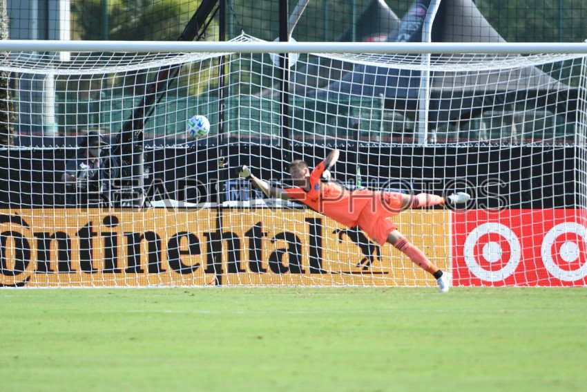 FC Cincinnati Goalkeeper Tyton, Przemyslaw #22 makes a jump to try to catch the ball during the MLS is Back Tournament at ESPN Wild World of Sports in Orlando Florida on Thursday July 16, 2020. Photo Credit: Marty Jean-Louis