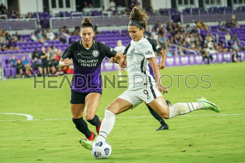 Orlando, Florida, USA, August 14, 2021, Portland Thorns player Sophia Smith #9 attempt to score against the Orlando Pride at Exploria Stadium. (Photo Credit: Marty Jean-Louis)