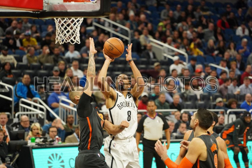 Brookyn's Guard Spencer Dinwiddie (#8) takes a shot at the basket. (Amway Center in Orlando on Friday January 6, 2020) Photo Credit: Marty Jean-Louis