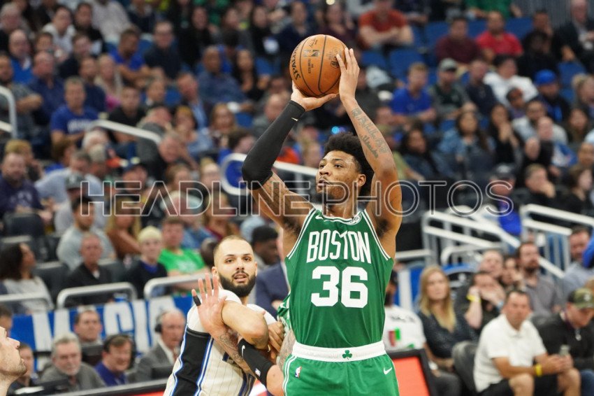 Boston Celtics player Marcus Smart #36 shoots a three point at the Amway Center on Friday January 24, 2020 in Orlando, Florida. Photo Credit: Marty Jean-Louis